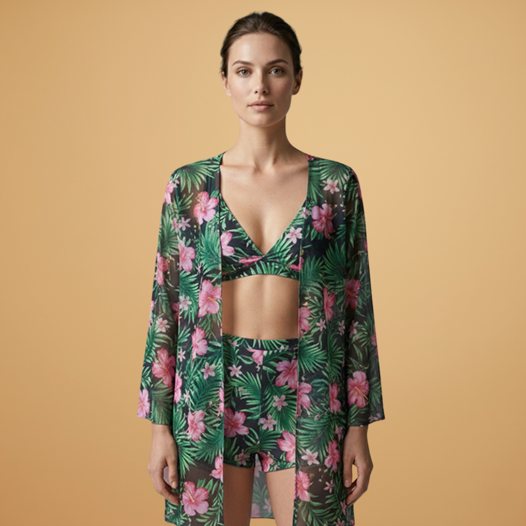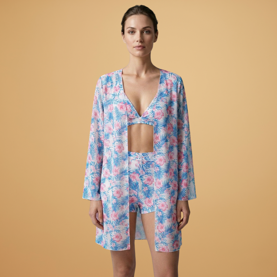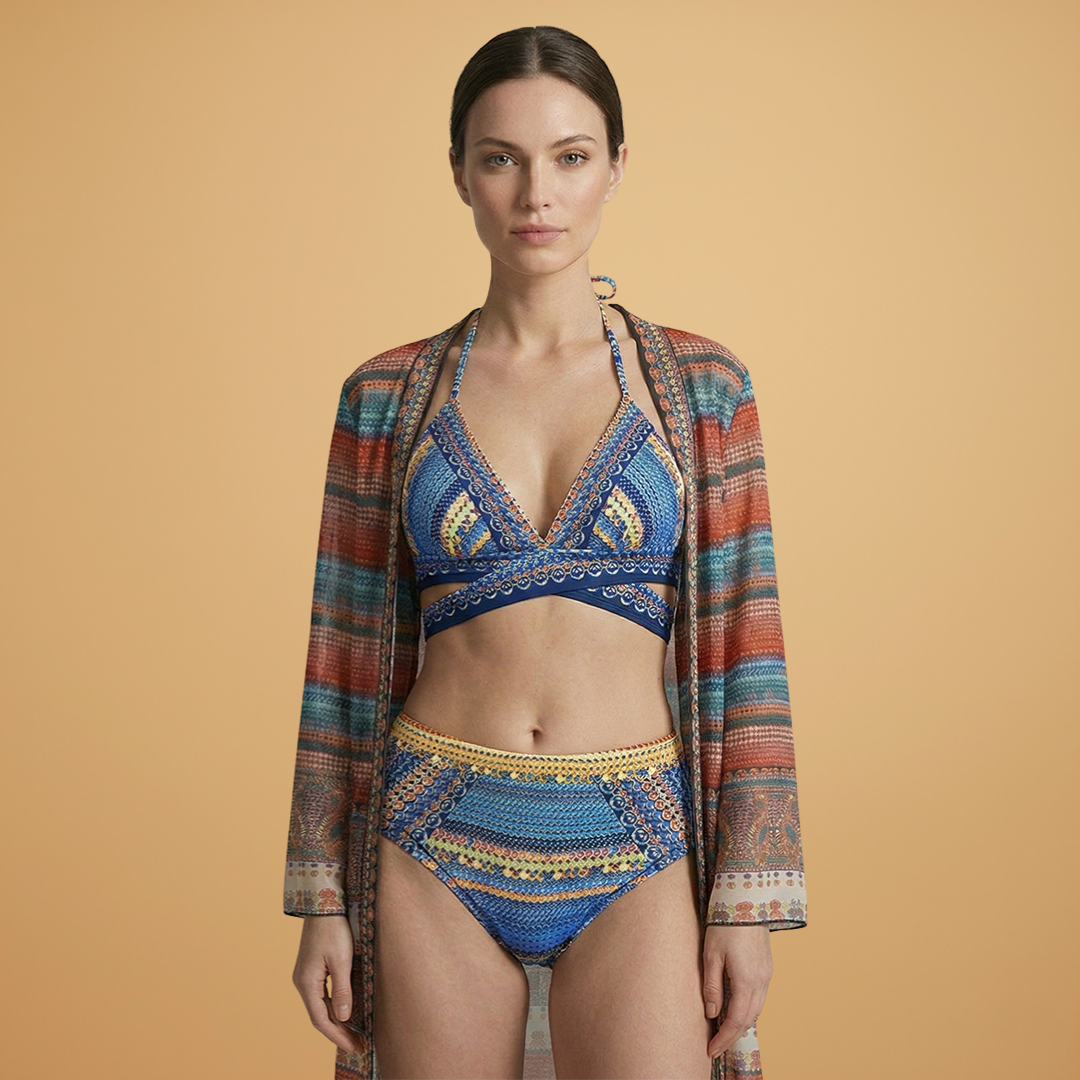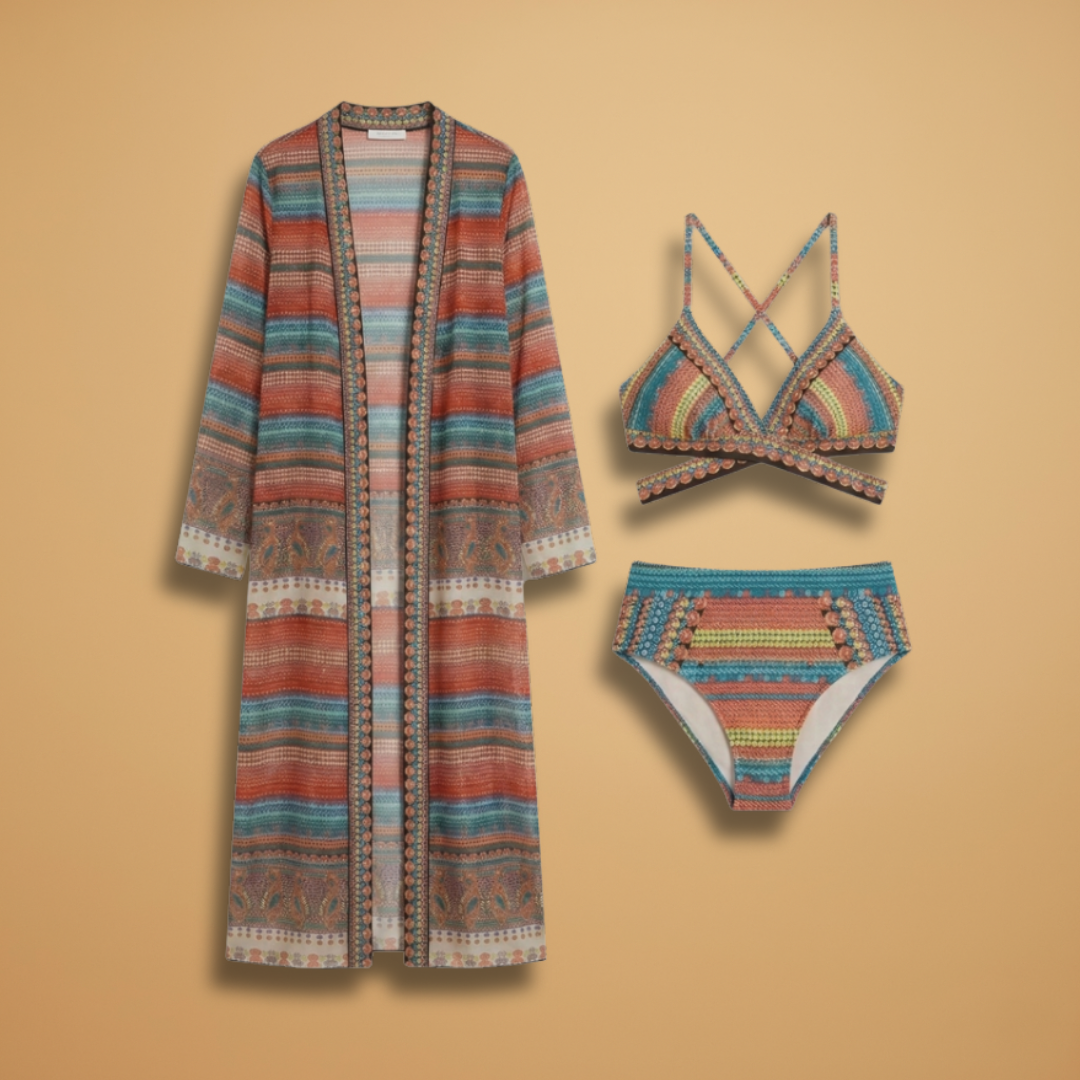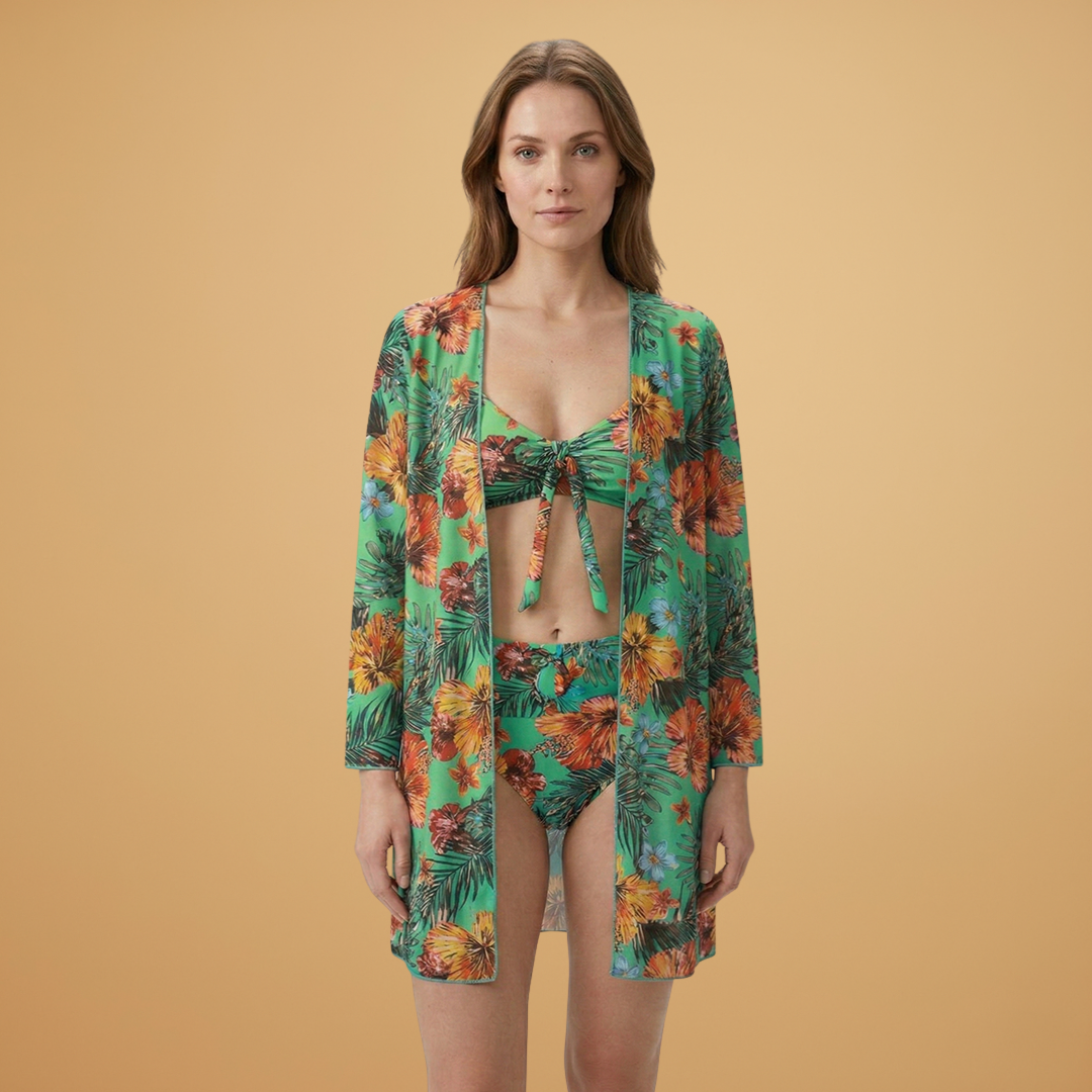 Women’s 3-Piece Bikini Set with Kimono and High-Waist