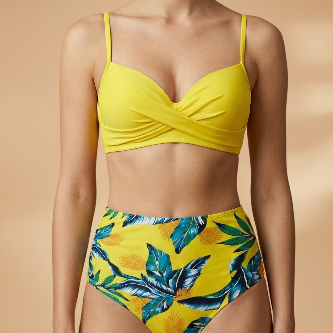 Women's Bikini Set with Wrap Top and High-Waisted Bottoms