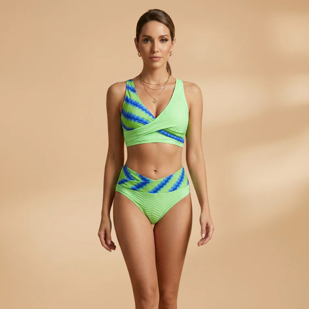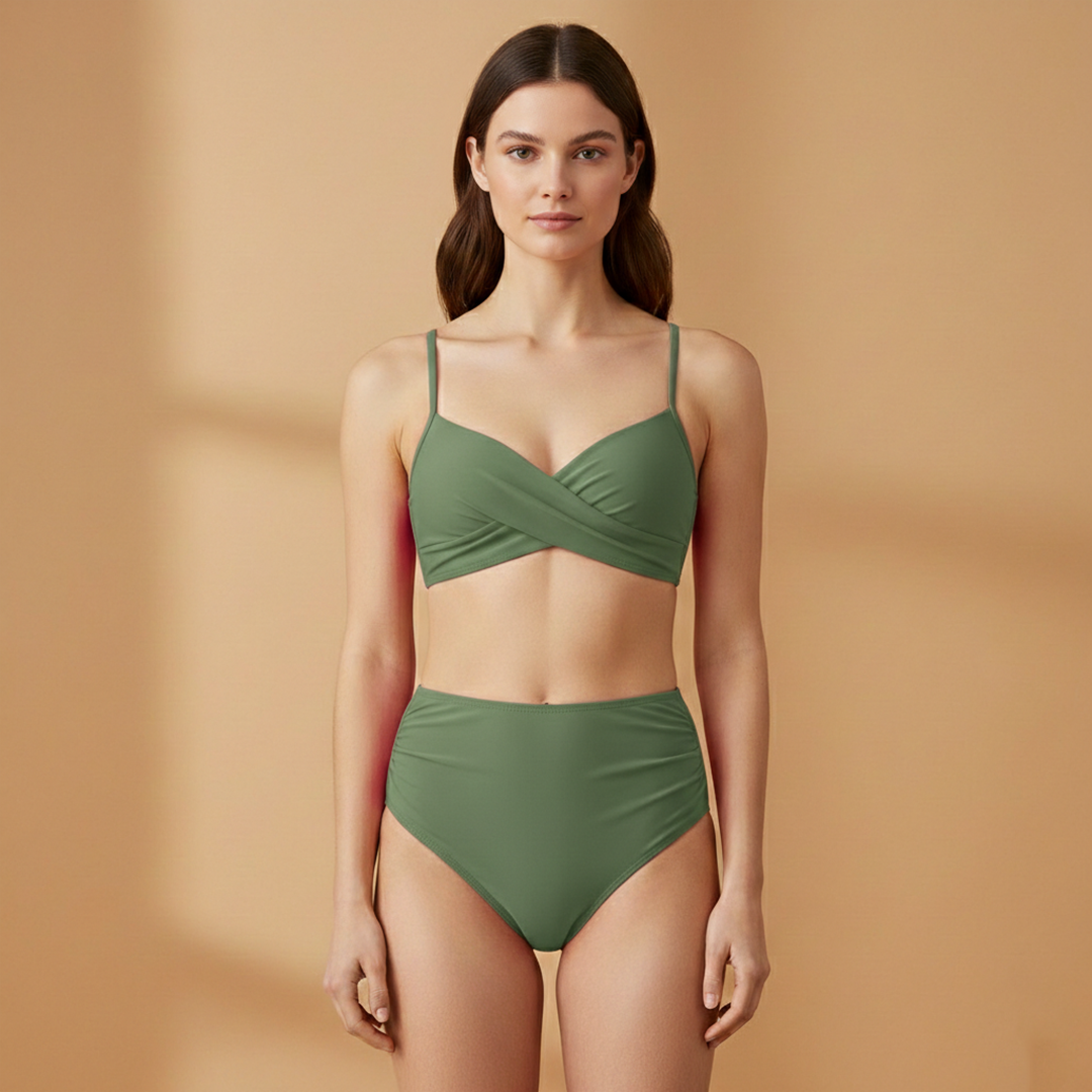 Women’s Bikini Set with Crossover Top and High-Waist Bottoms