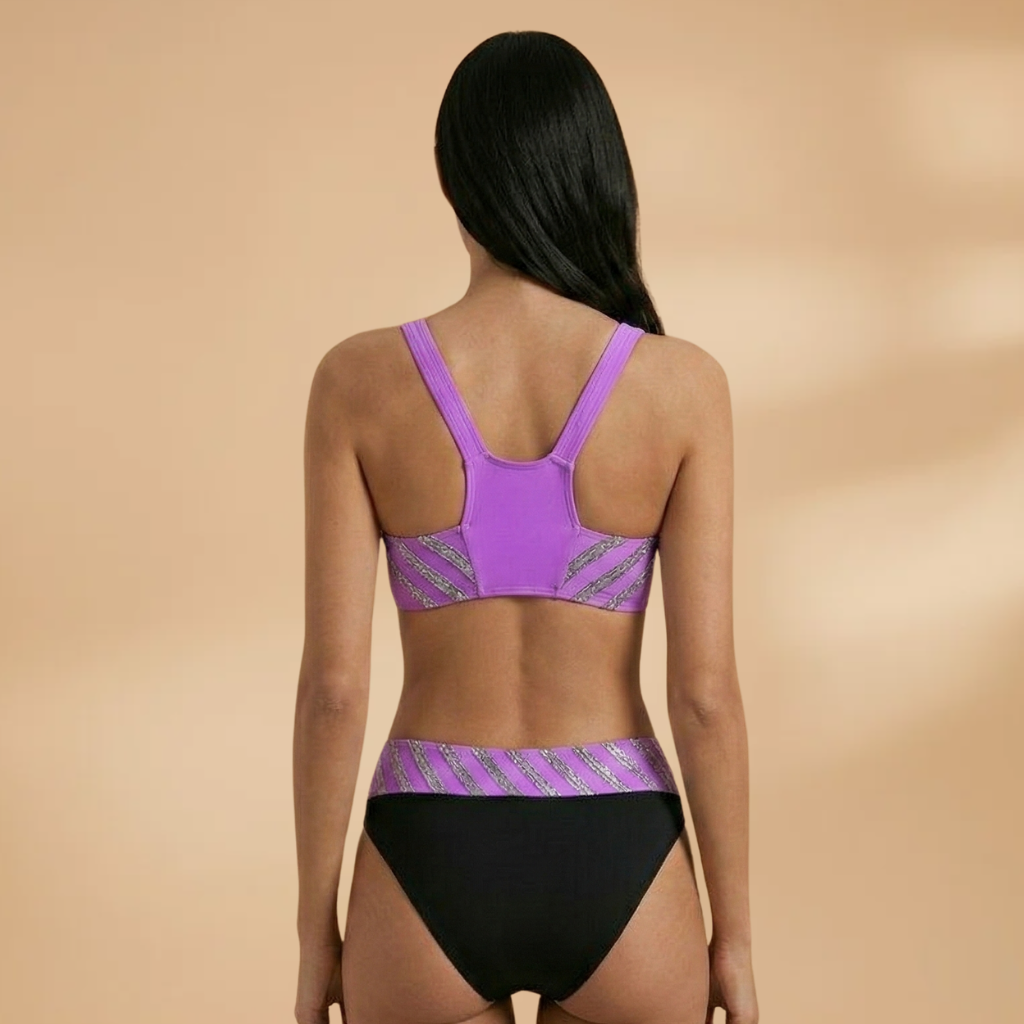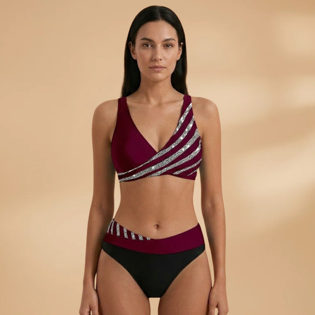 Women's Bikini Set with Glitter Stripes and High-Waisted Bottoms