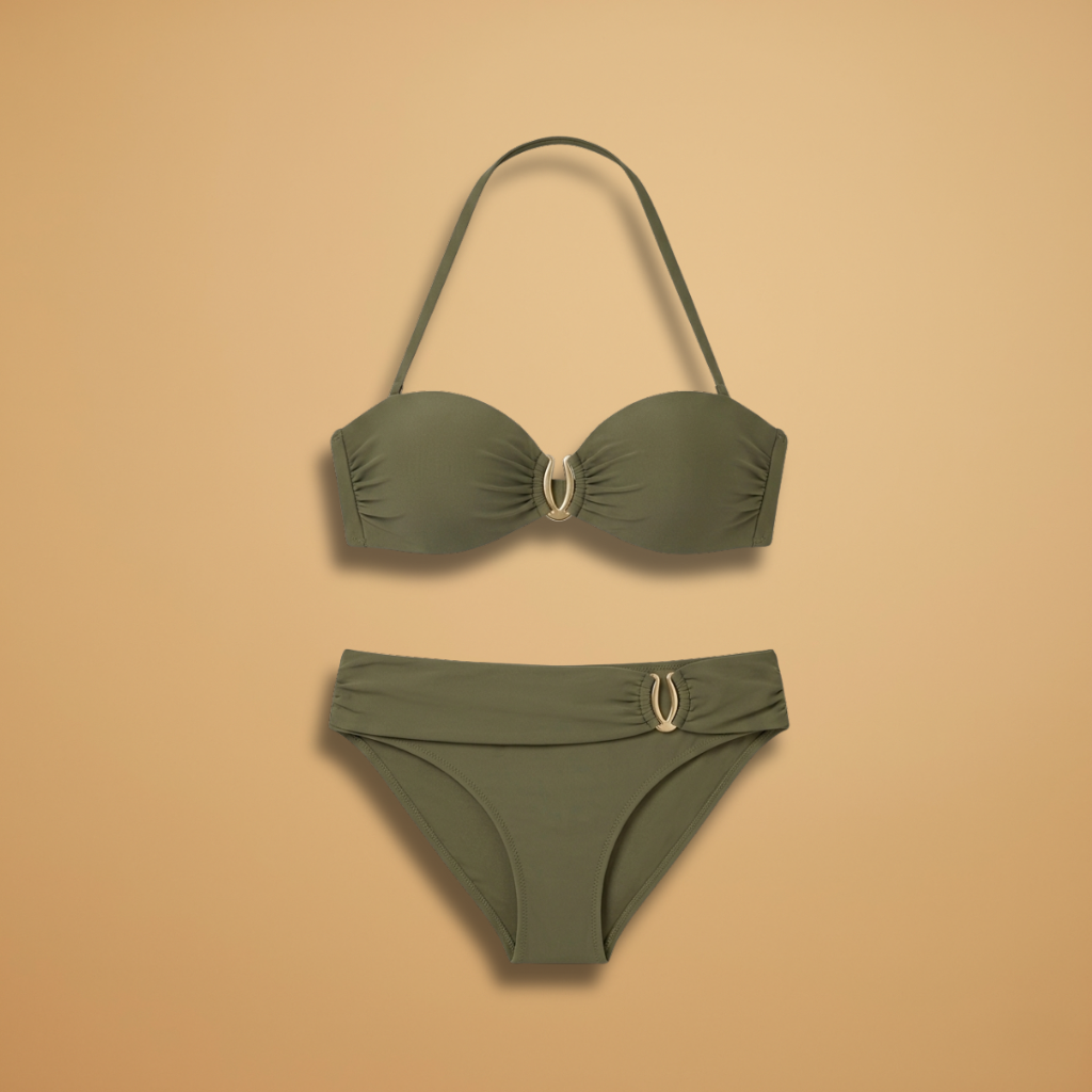 Women’s Bikini Set with Bustier Top and High-Waist Bottoms