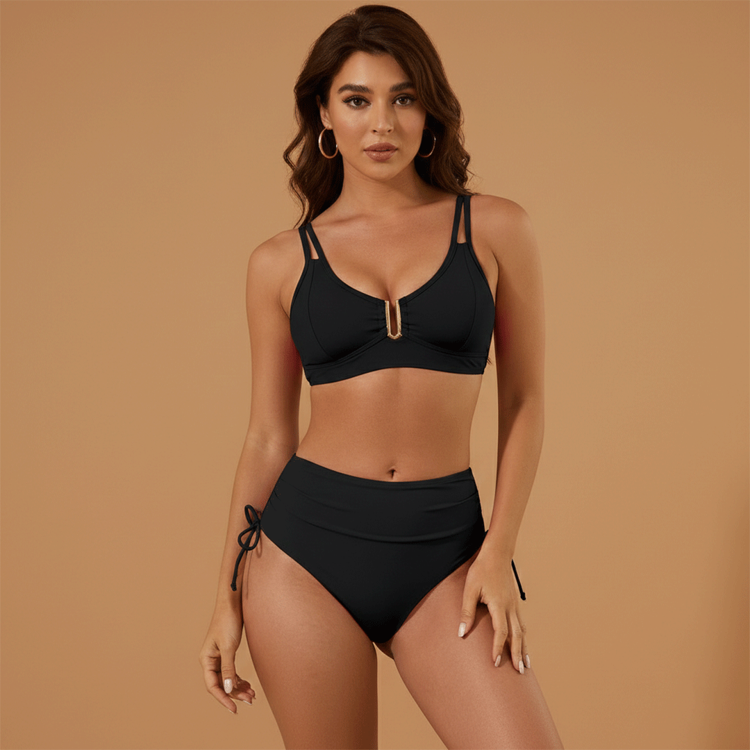 Women’s Bikini Set with Split Straps and High-Waisted Bottom