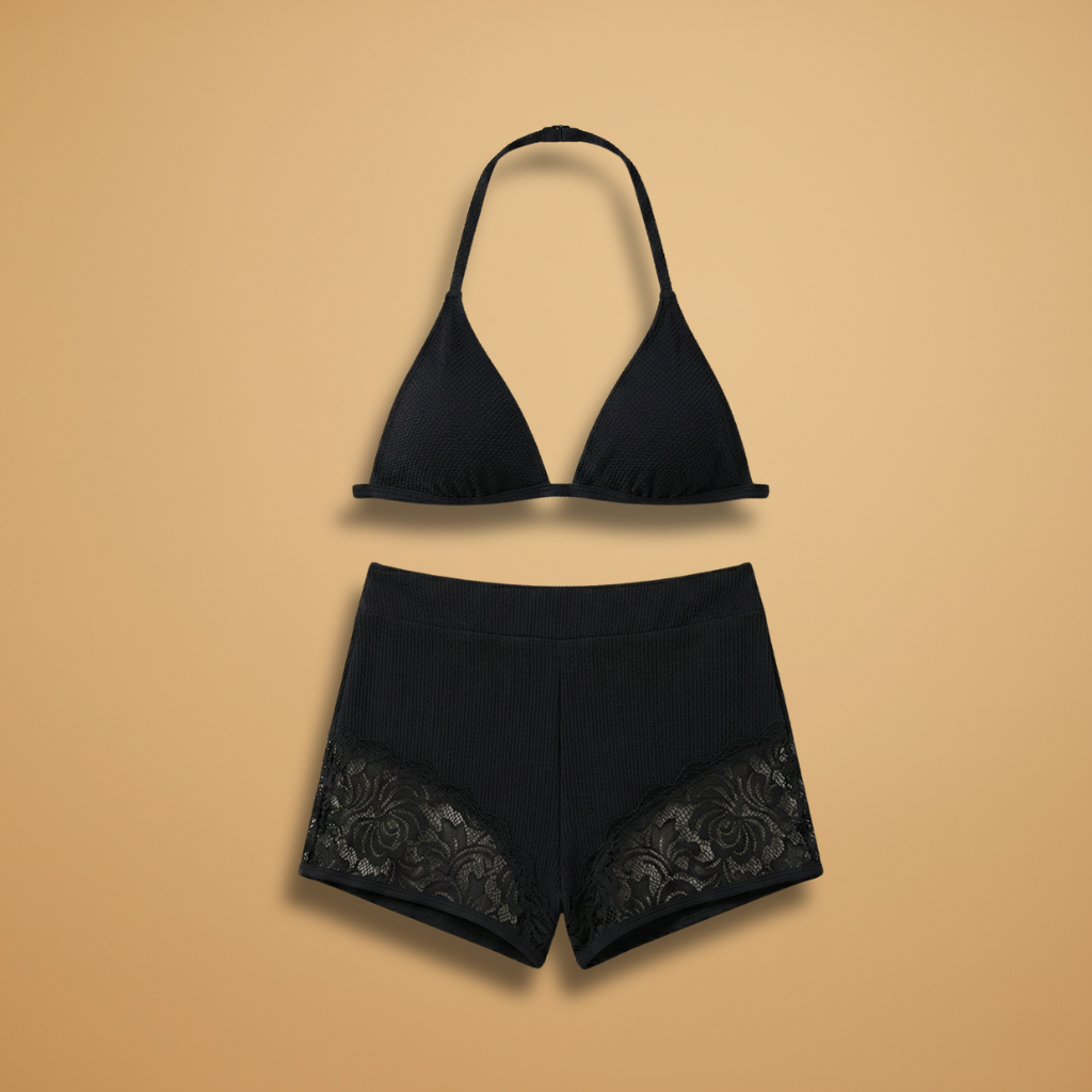 Women's Bikini Set with Strapless Top and Lace Shorts