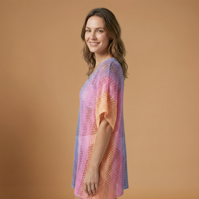 Women's Bikini Cover-up with Hollow Crochet Design and Gradient Color Effect