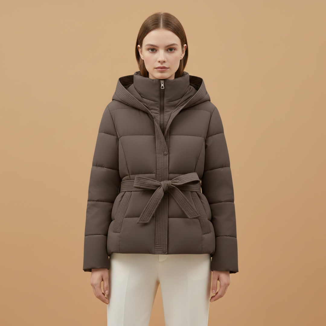 Women’s Puffer Jacket with Hood and Quilted Exterior