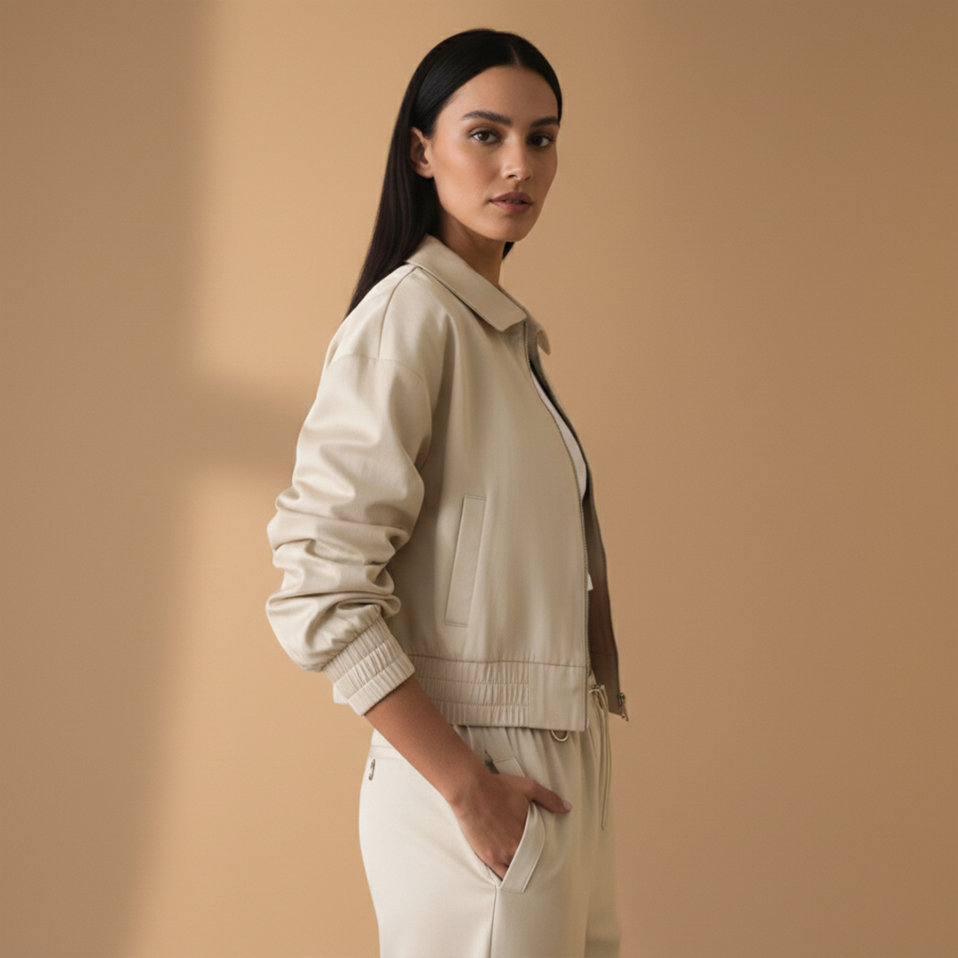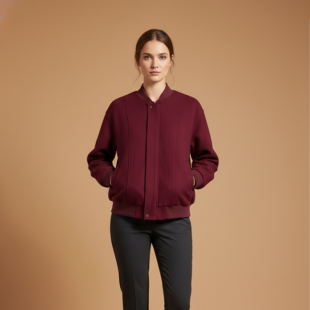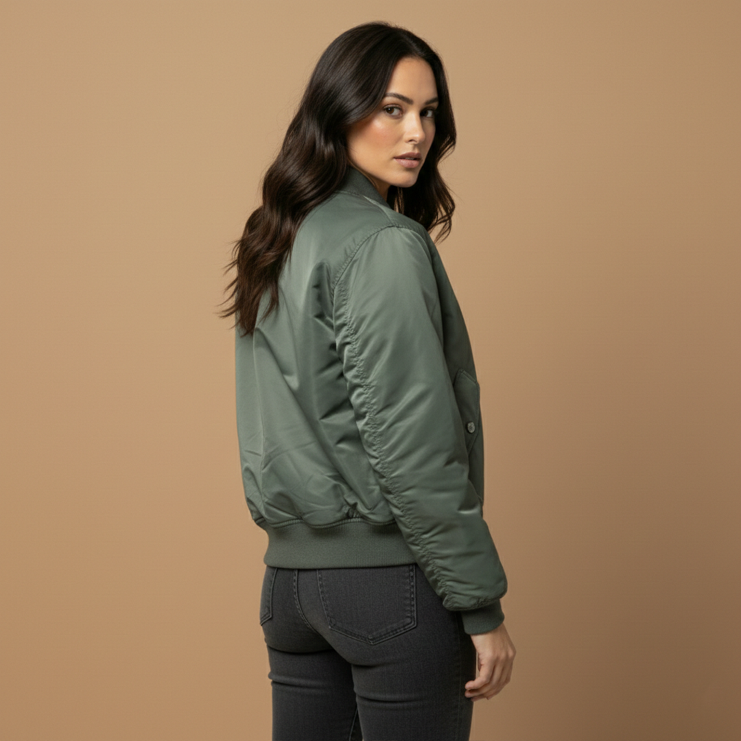 Women’s Bomber Jacket with Zip Closure and Ribbed Cuffs