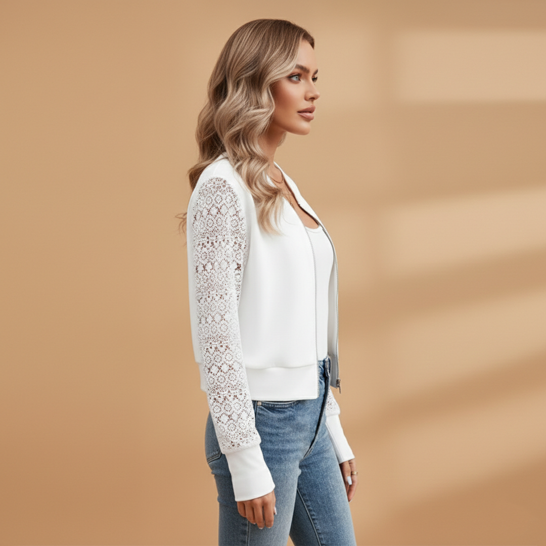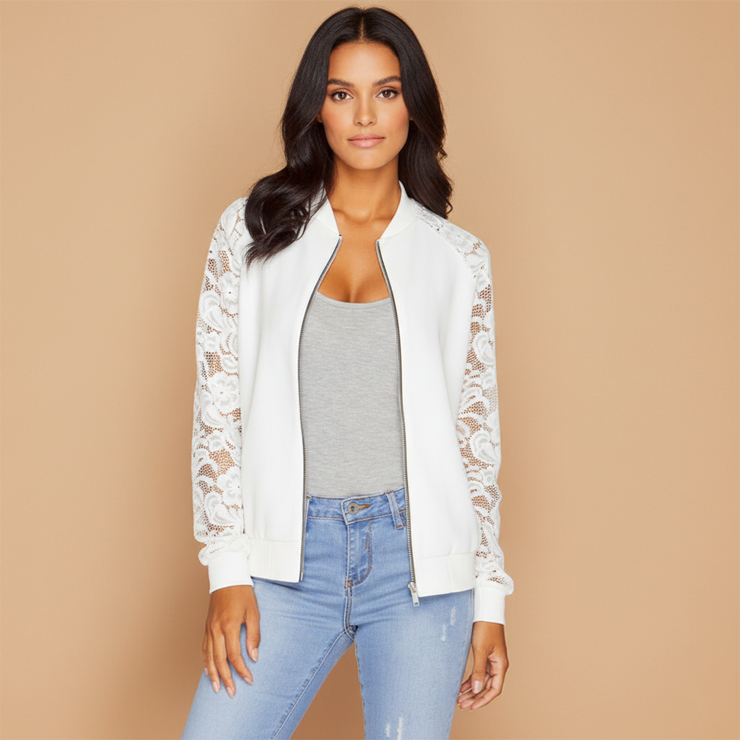 Women's Jacket with Lace Sleeves and Elastic Cuffs