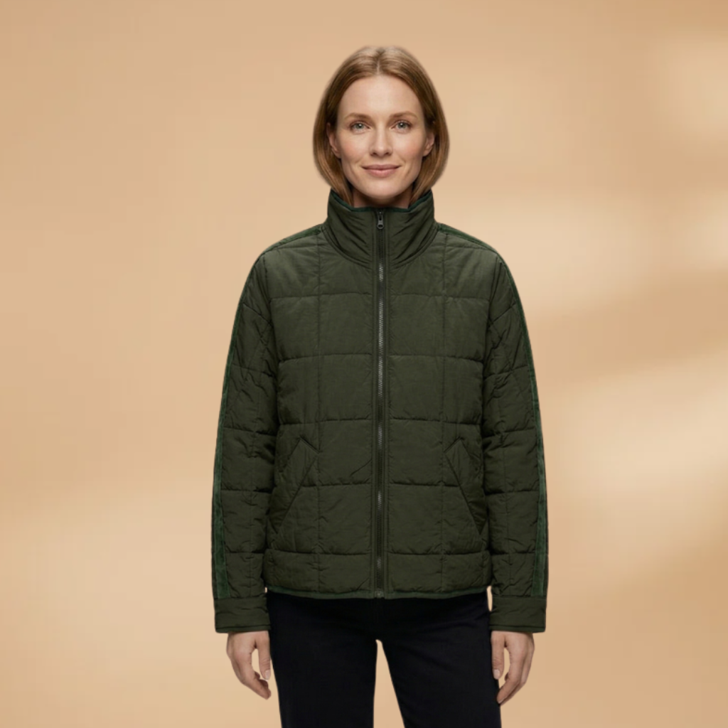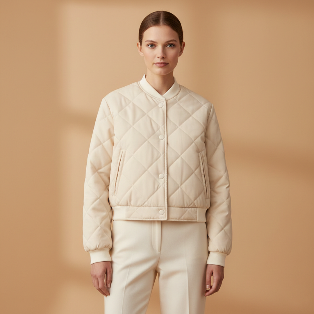 Women's Bomber Jacket with Quilted Surface and Ribbed Cuffs