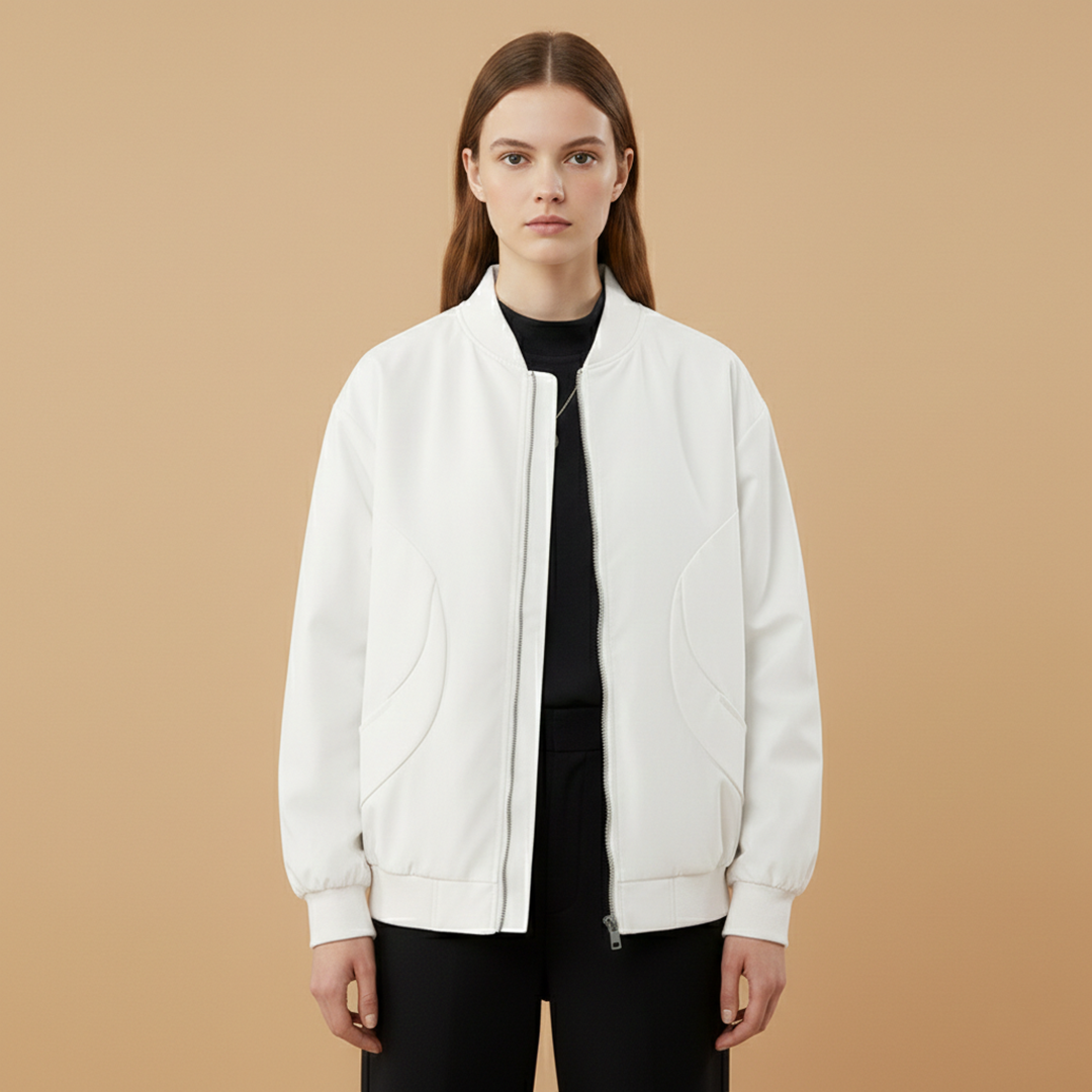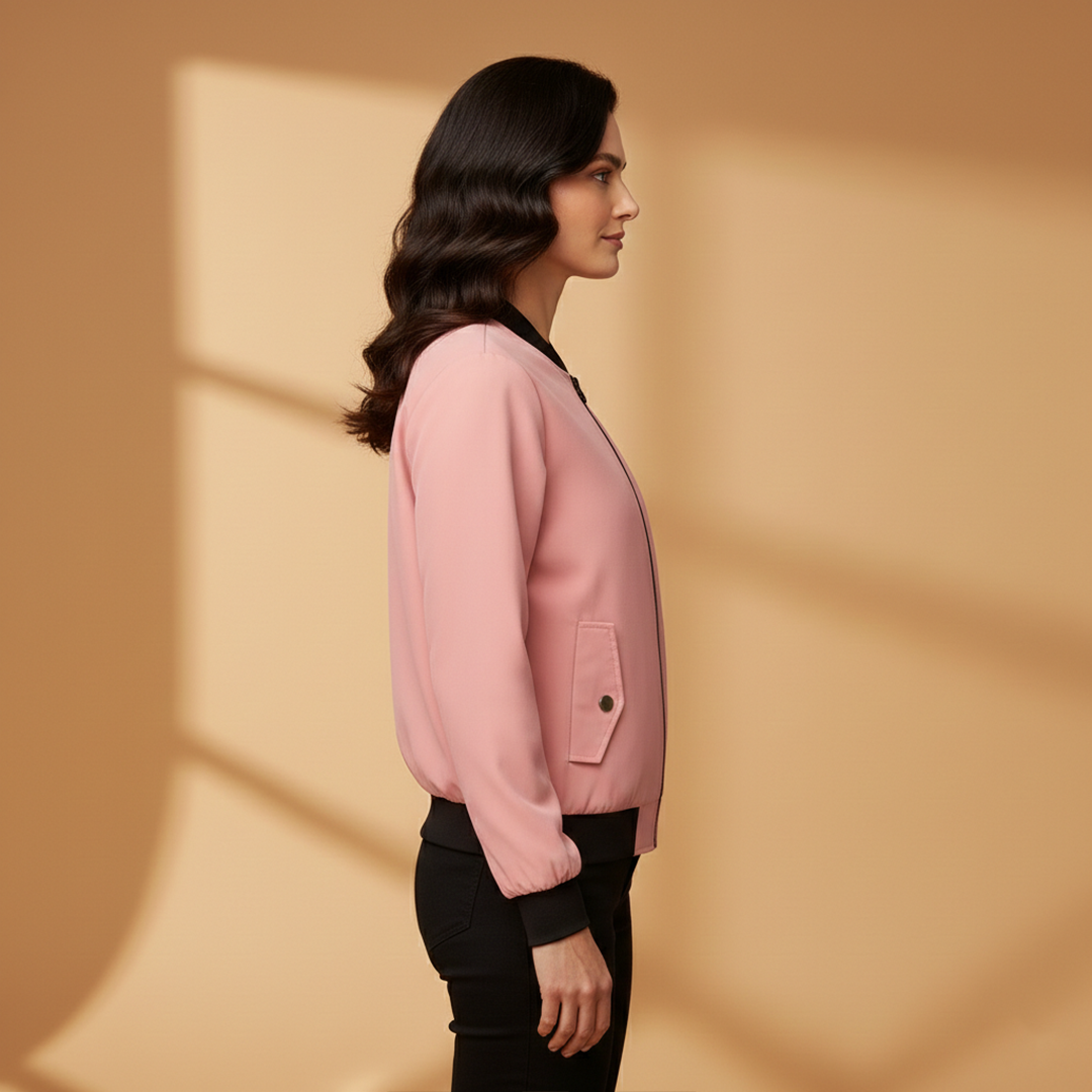 Women's Bomber Jacket with Zip Closure and Front Pockets