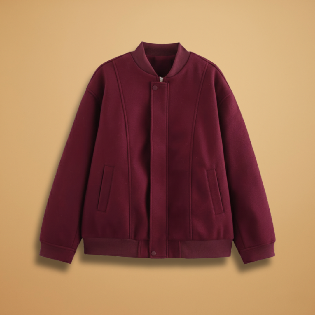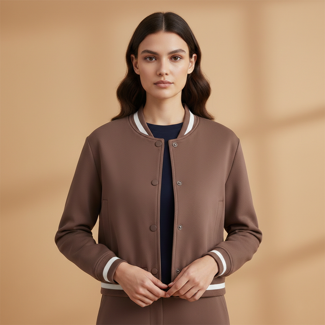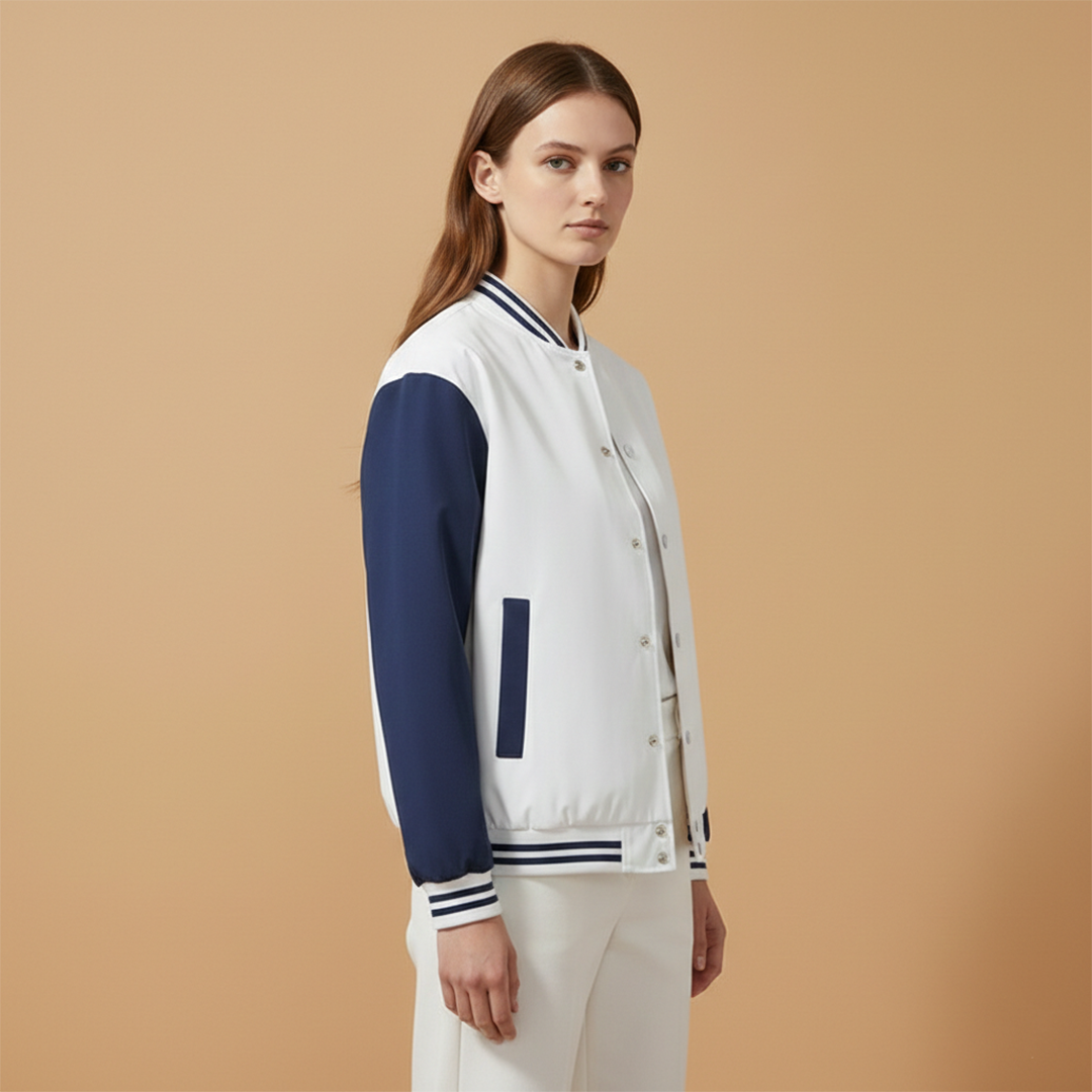 Women's Varsity Jacket with Ribbed Collar and Press Stud Closure