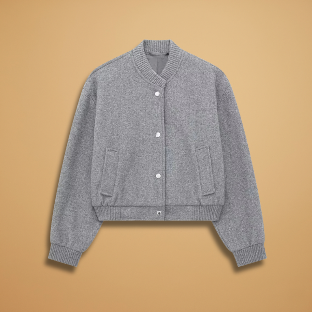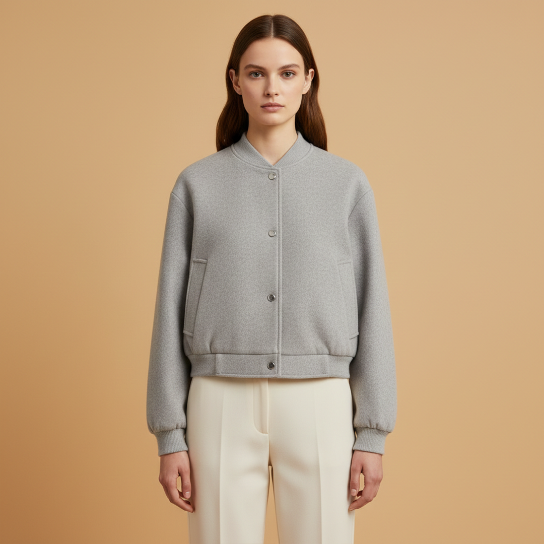 Women's Cropped Bomber Jacket with Snap Closure and Ribbed Cuffs