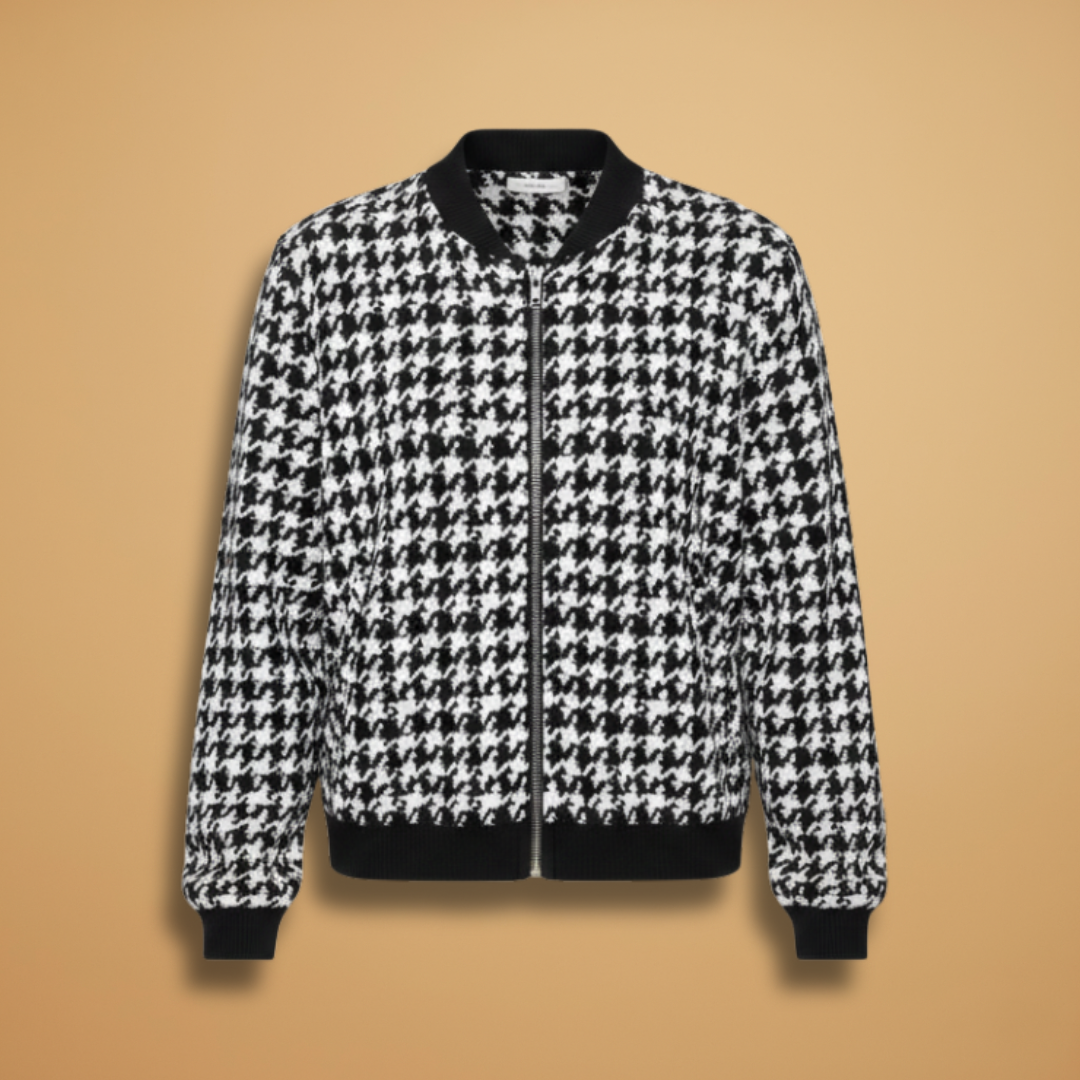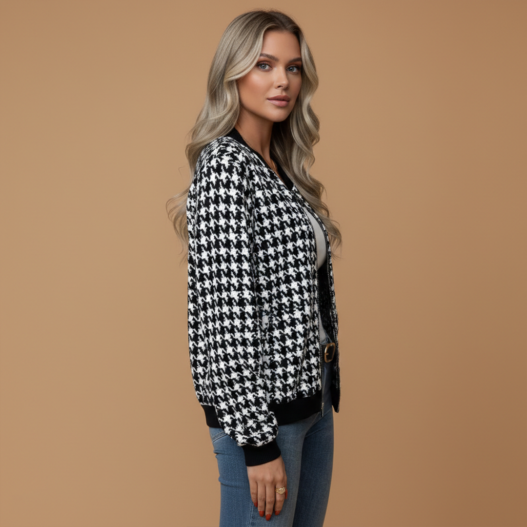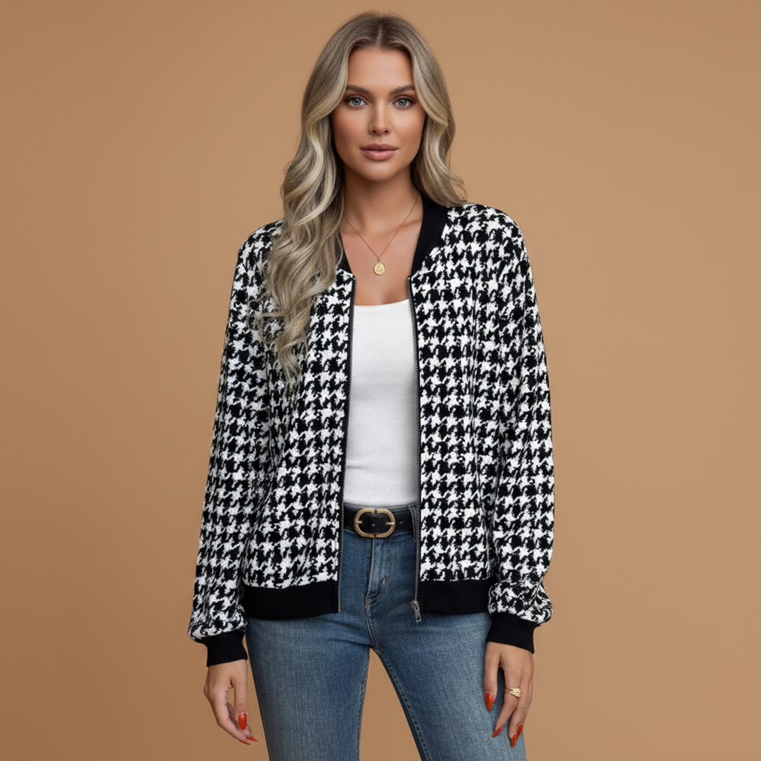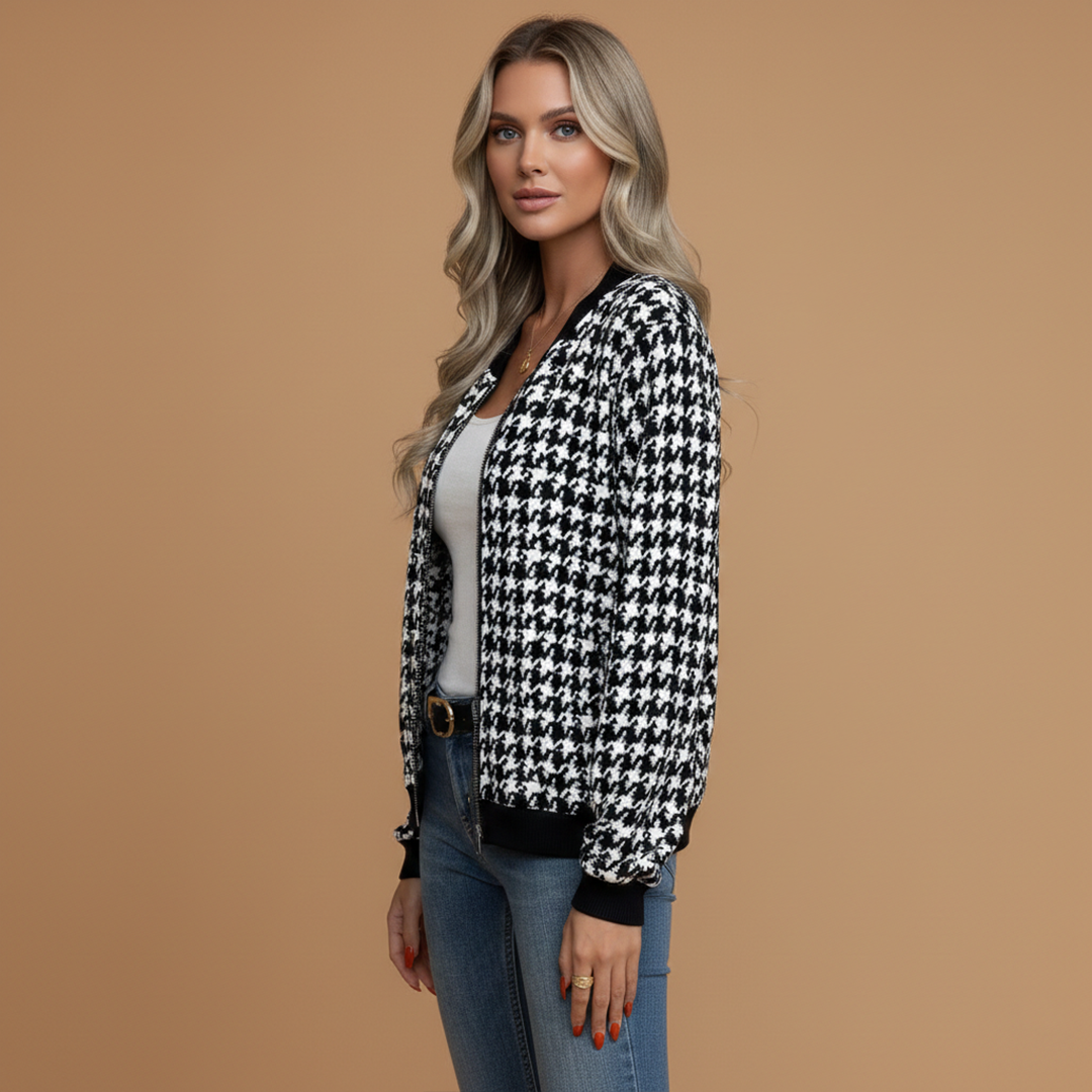 Women's Bomber Jacket with Zip Closure and Ribbed Details