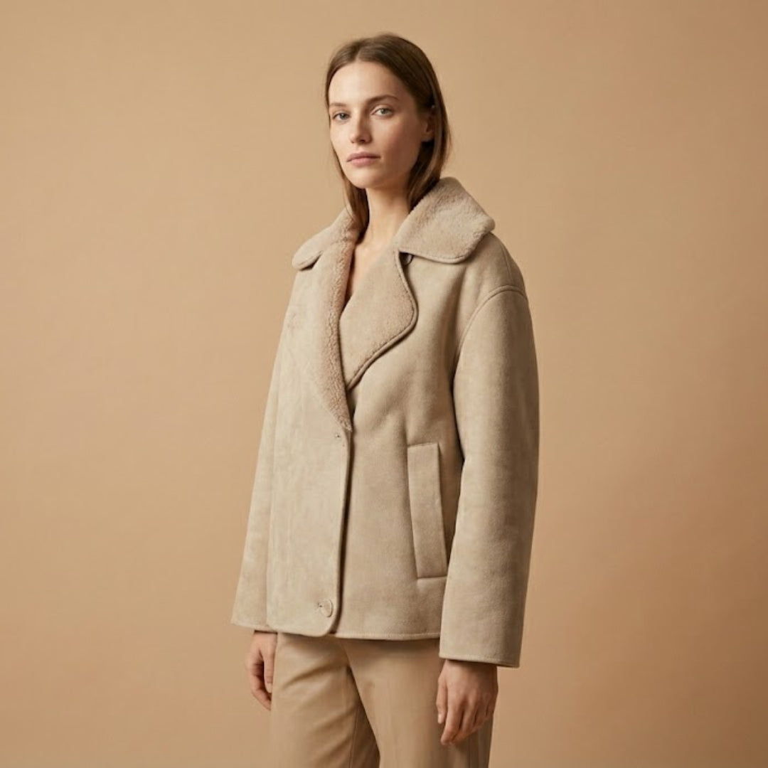 Women’s Shearling Jacket with Wide Collar and Button Closure
