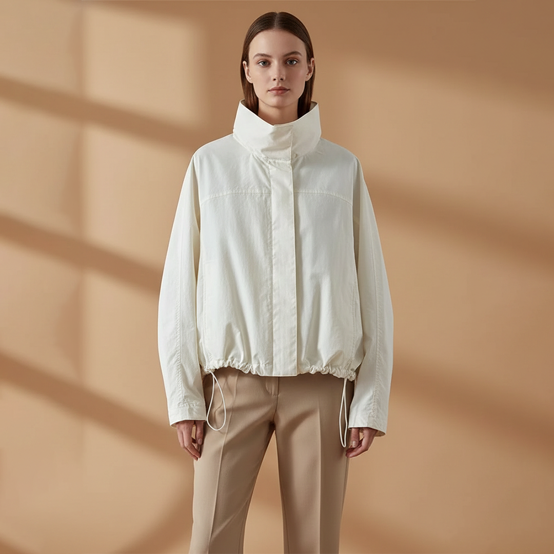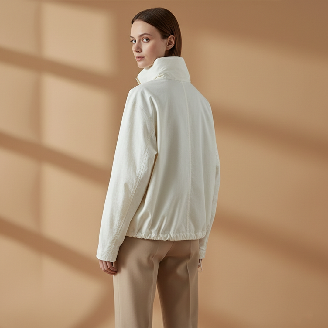 Women’s Jacket with Stand Collar and Ribbed Surface