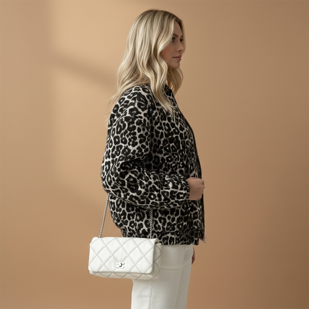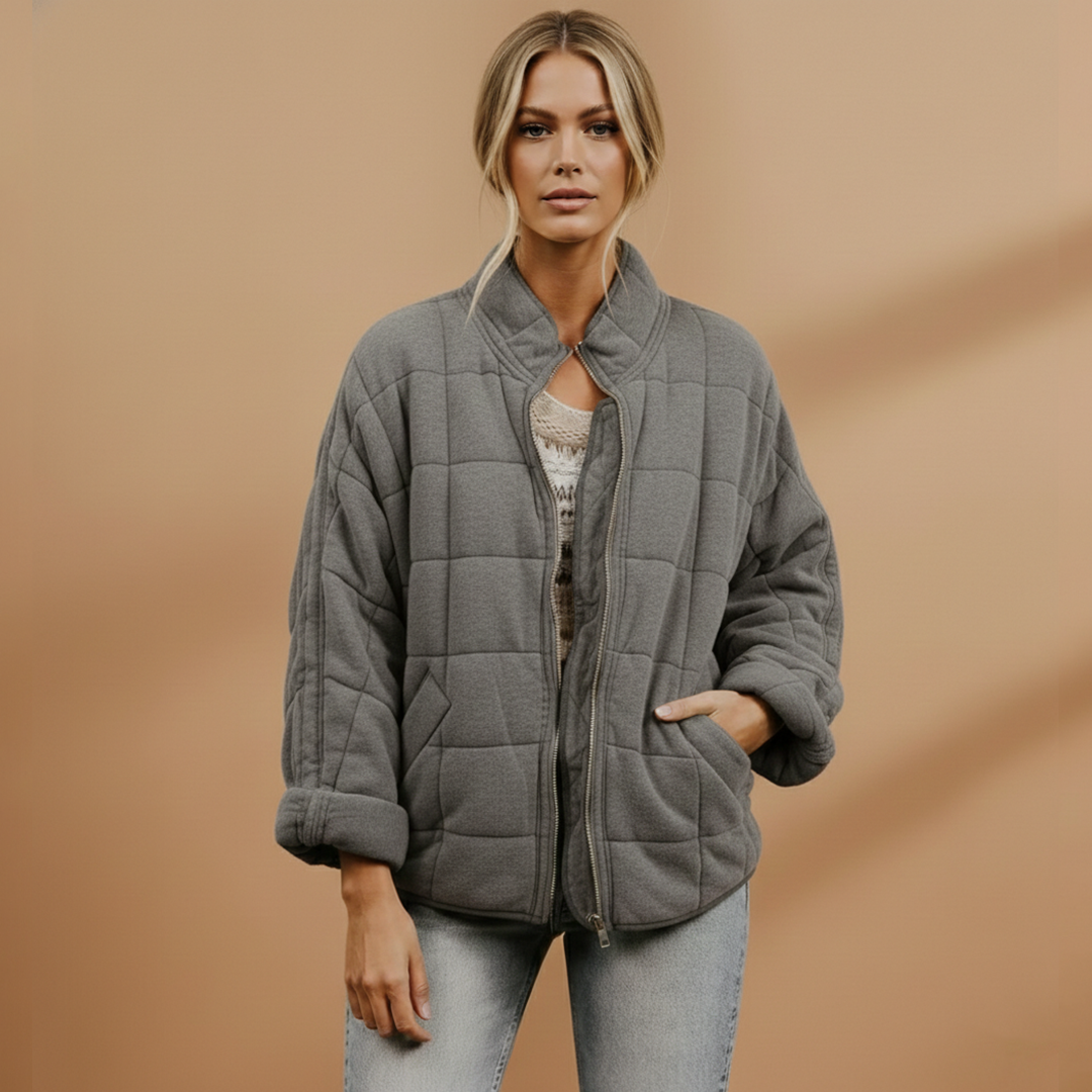 Women's Bomber Jacket with Zip Closure and Quilted Surface