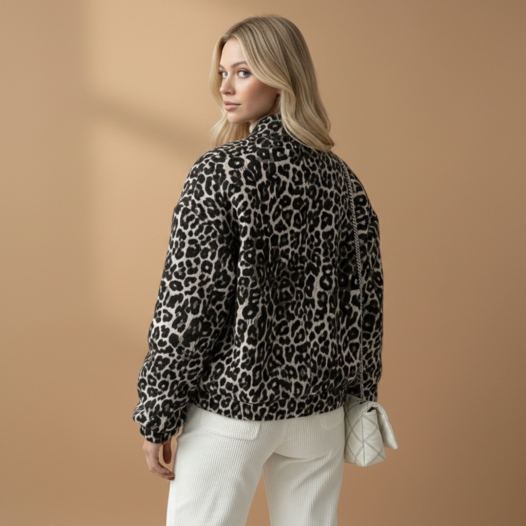 Women's Bomber Jacket with Lapel and Long Sleeves