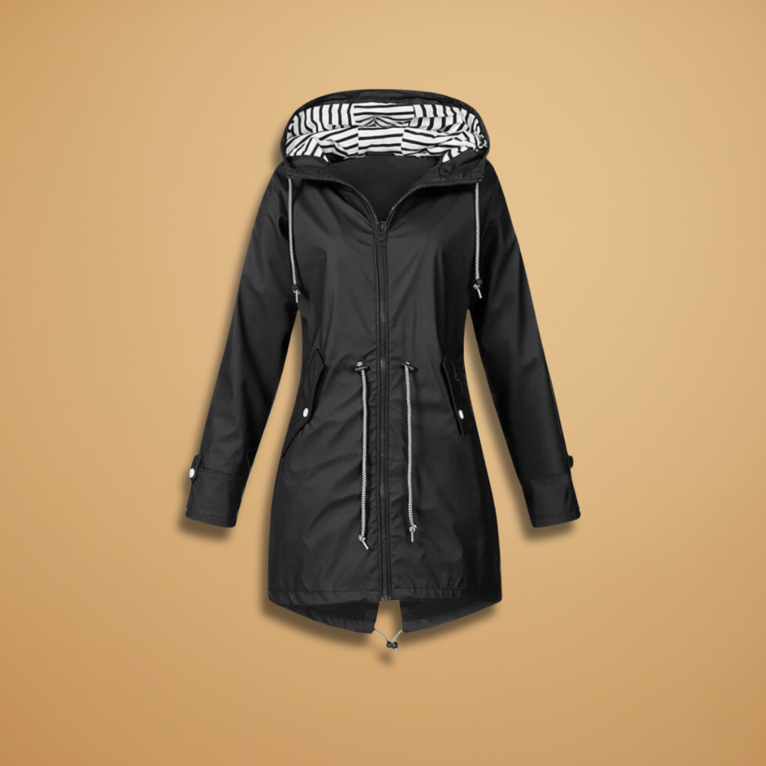 Women’s Rain Jacket with Hood and Adjustable Waist
