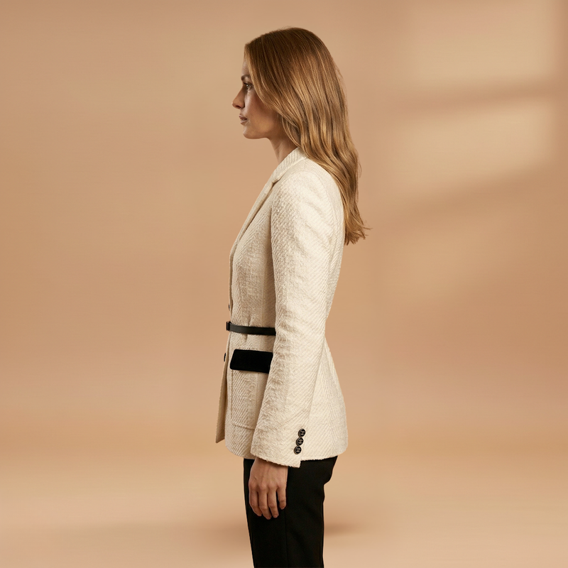 Women’s Blazer Jacket with Waist Accents and Button Fastening