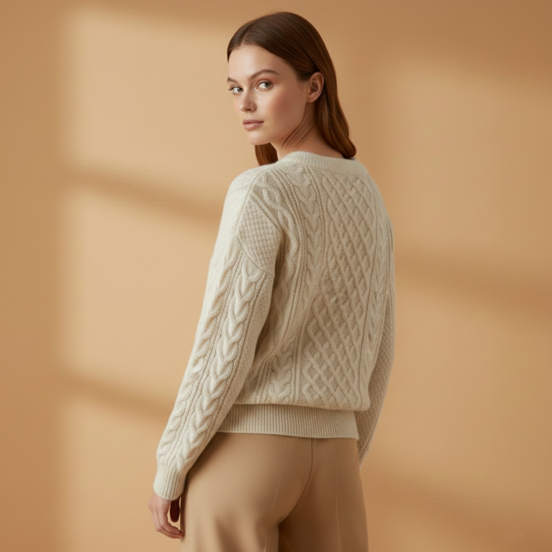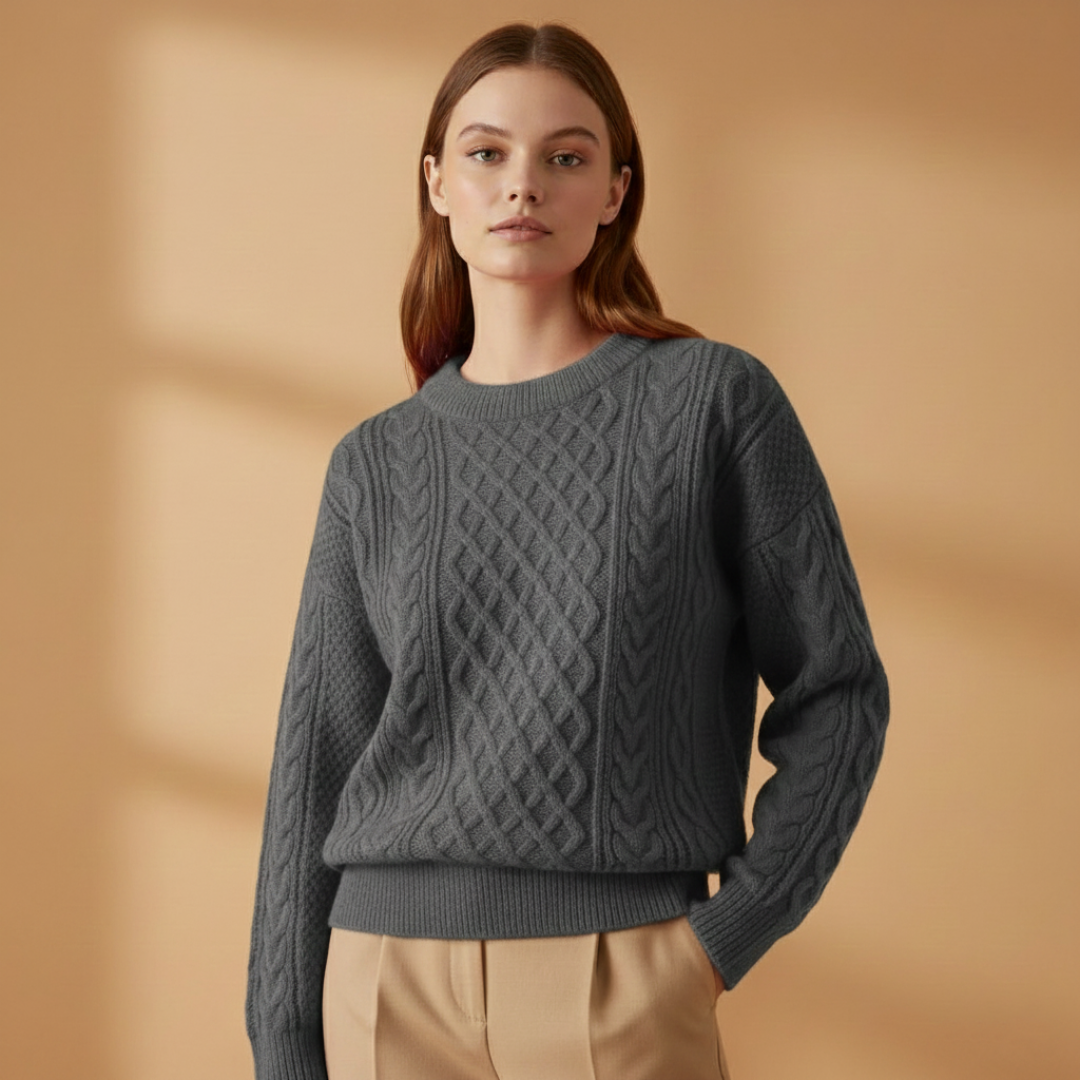 Women’s Crew-Neck Sweater with Cable Knit