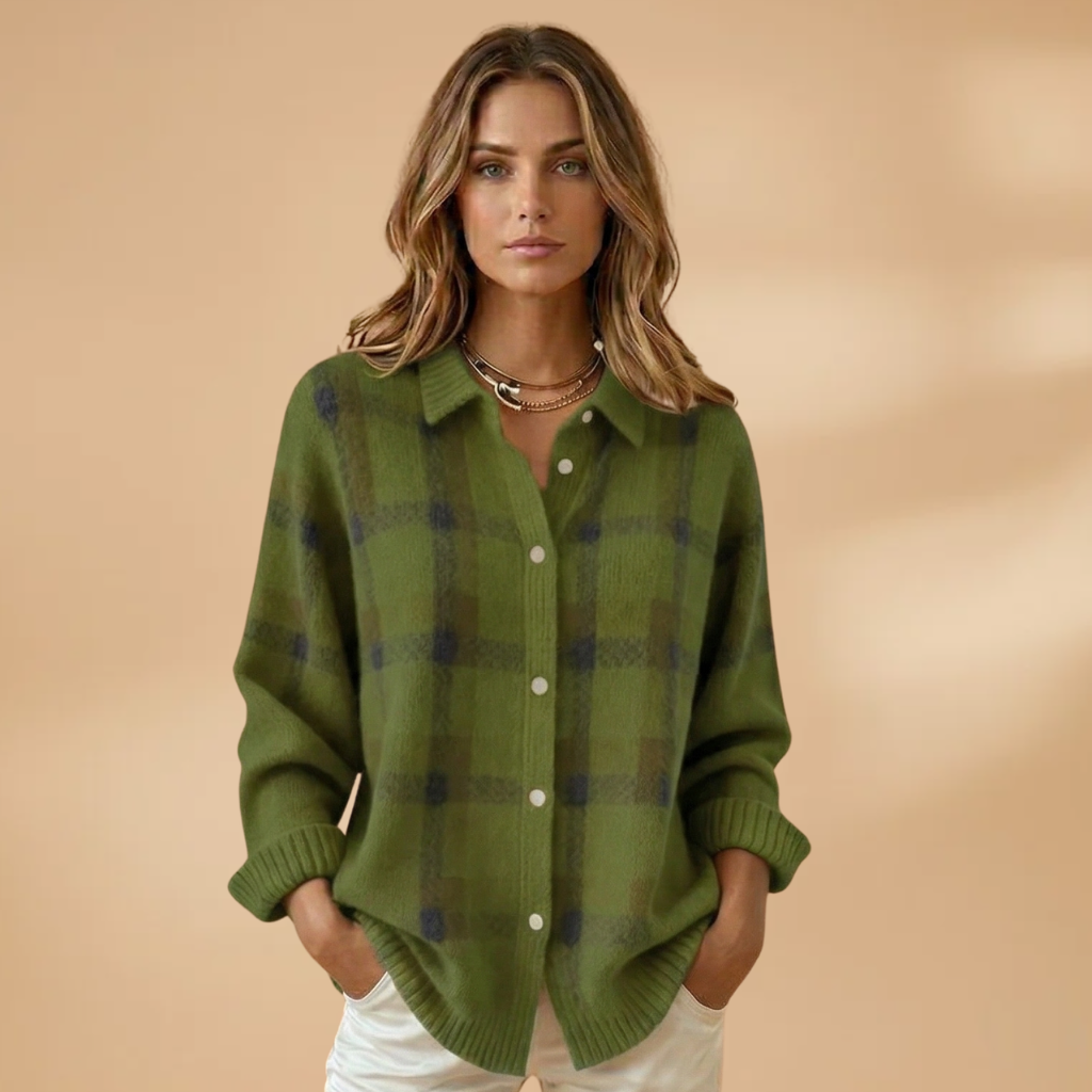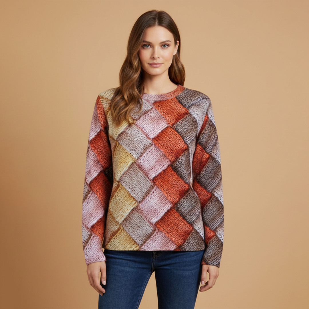 Women's Sweater with Retro Check Pattern Knit Fabric
