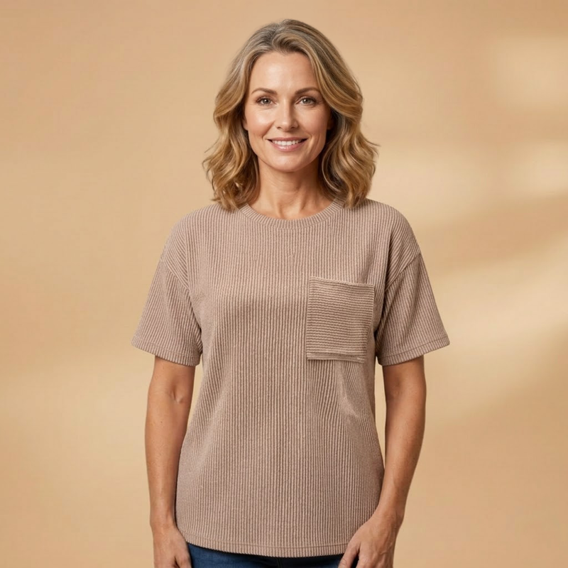 Women's Casual T-Shirt with Textured Fabric and Practical Chest Pocket
