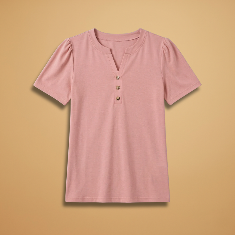 Women's T-Shirt with Button Detail and Short Sleeves