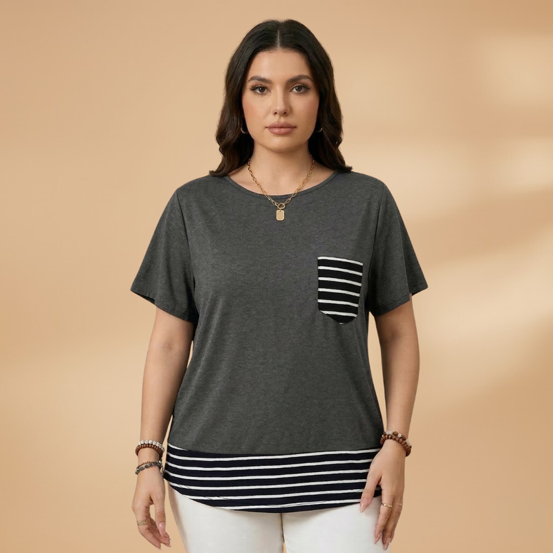 Women's T-Shirt with Chest Pocket and Striped Hem