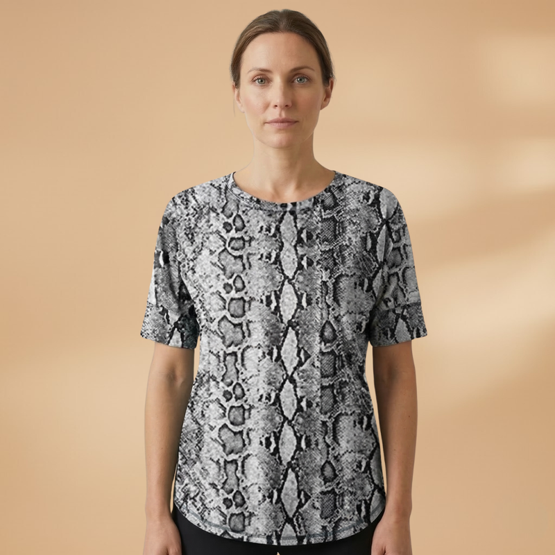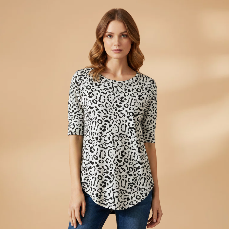 Women's T-Shirt with Leopard Pattern and Mixed Surface