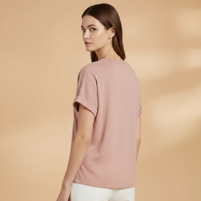 Women's T-Shirt with V-Neckline and Side Pockets