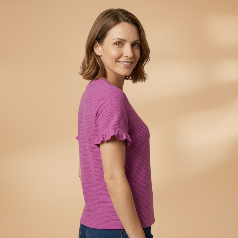 Women's T-Shirt with Ruffle Sleeves and Textured Surface