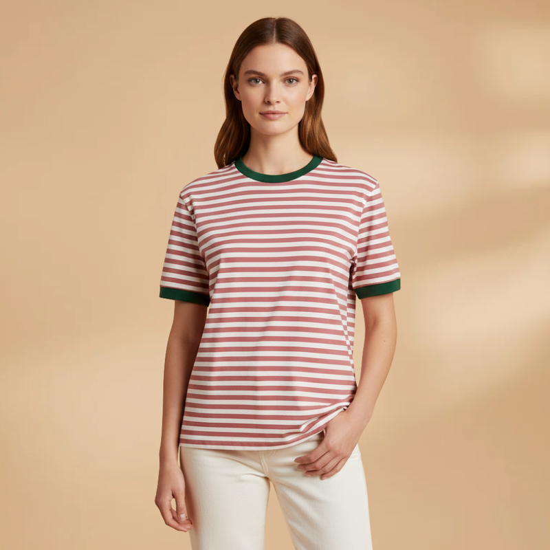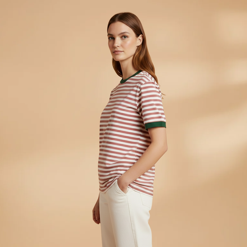 Women's T-Shirt with Striped Pattern and Contrasting Trim