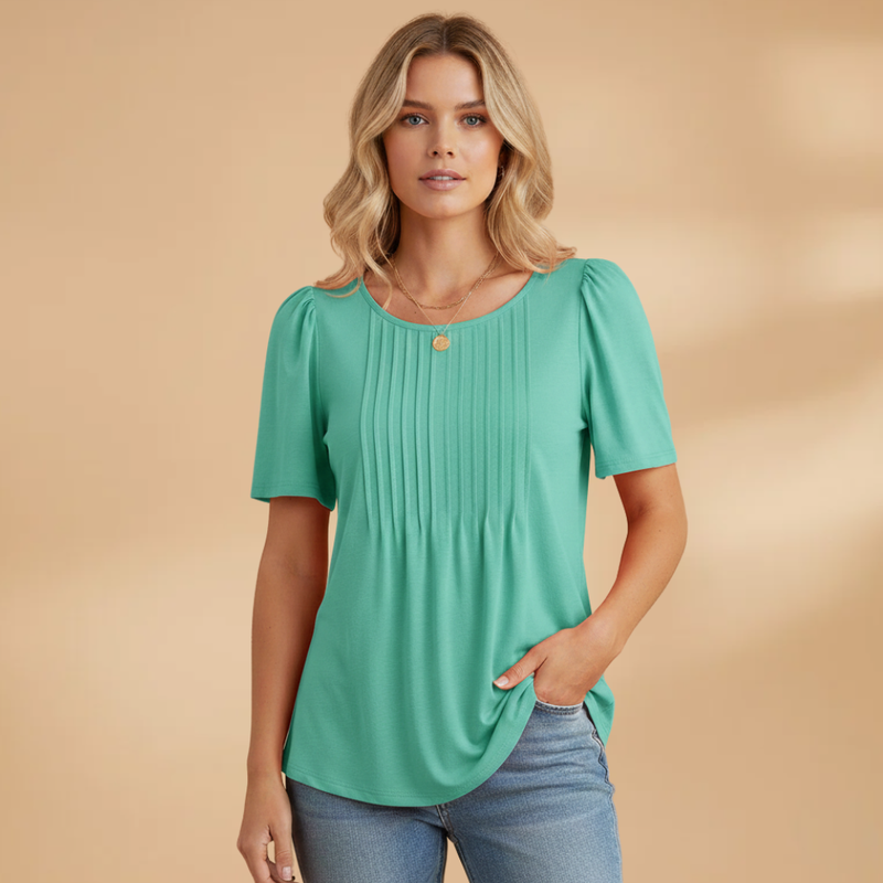 Women's T-shirt with Pleated Design and Short Sleeves