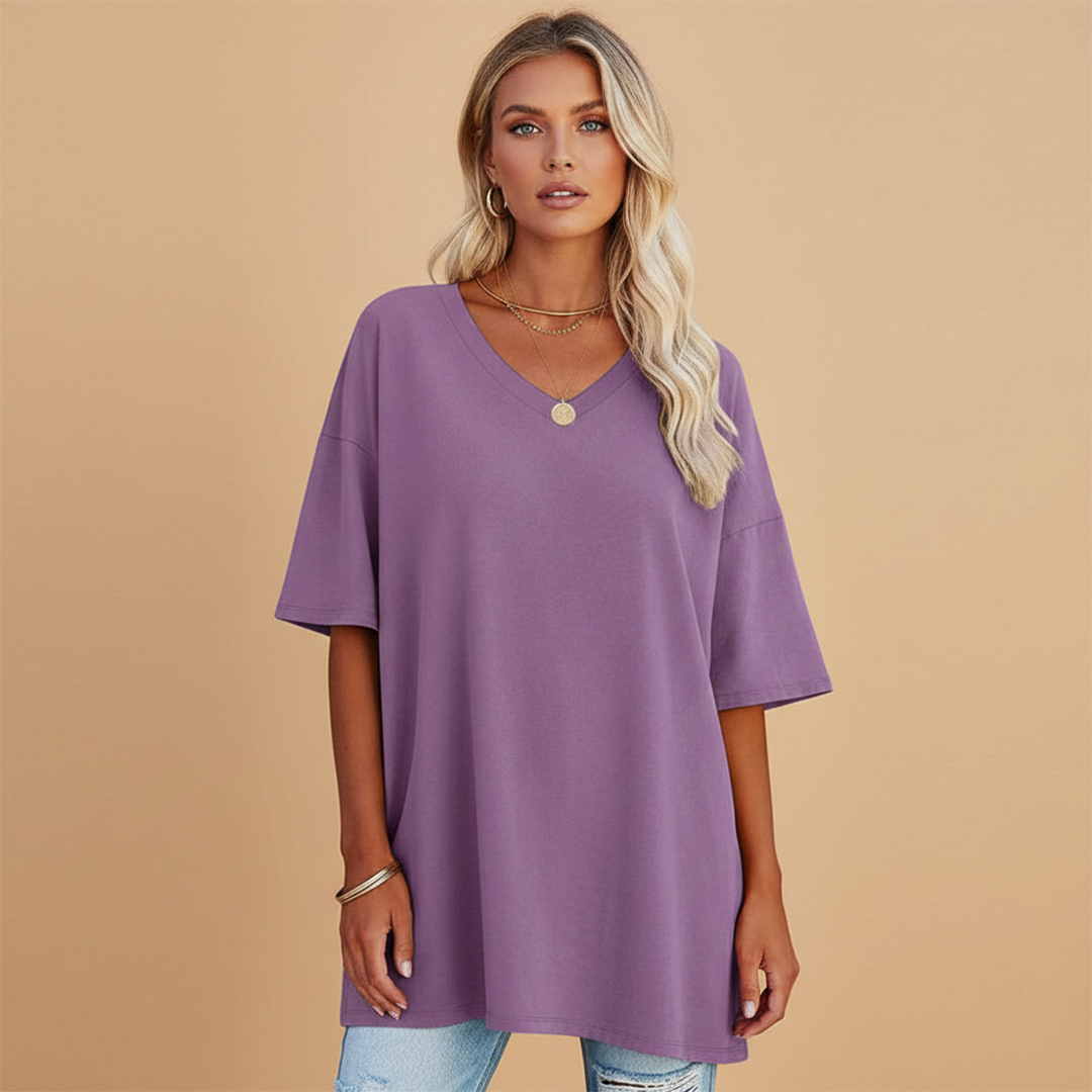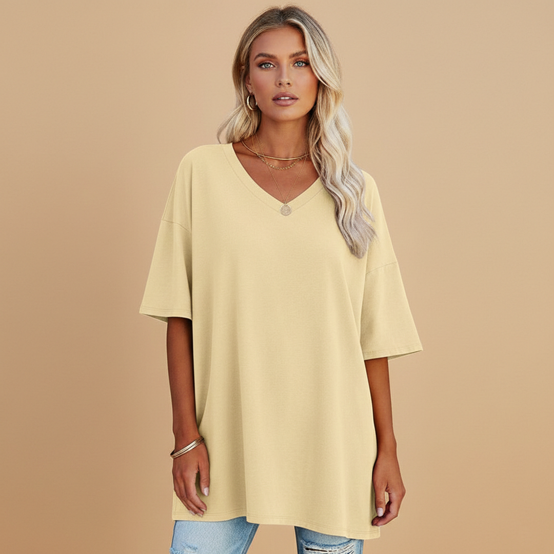 Women's T-shirt with V-neckline and Relaxed Fit