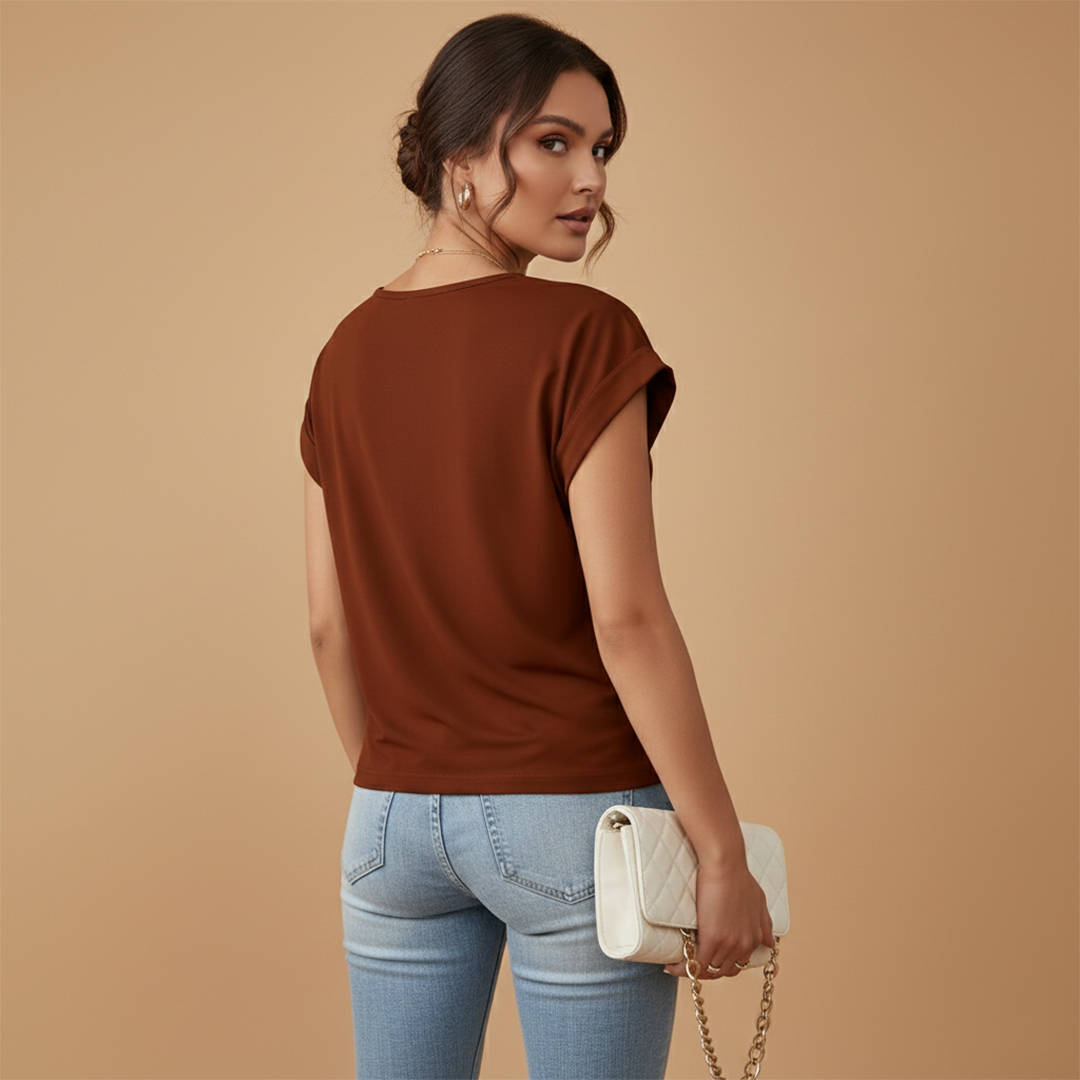 Women's Casual T-shirt with Short Sleeves and Round Neck