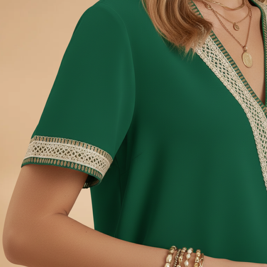 Women’s Blouse with V‑Neck and Trim